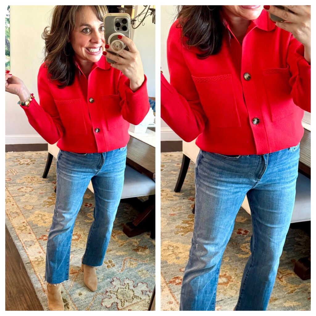 Seriously, if you don’t have them and they are still available in the size you need, grab them. You won’t regret it. Looks how different the cardi looks with regular jeans and with these! These jeans will really stretch your closet!