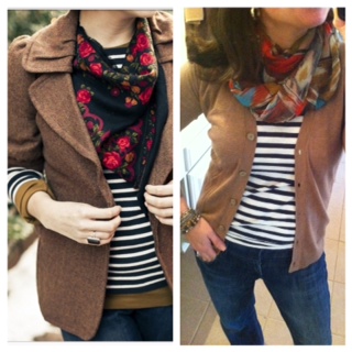Several of you mentioned in your comments that you were voting for #2 because of the tweed jacket. Well, mama doesn’t own a tweed jacket, so I had to improvise.