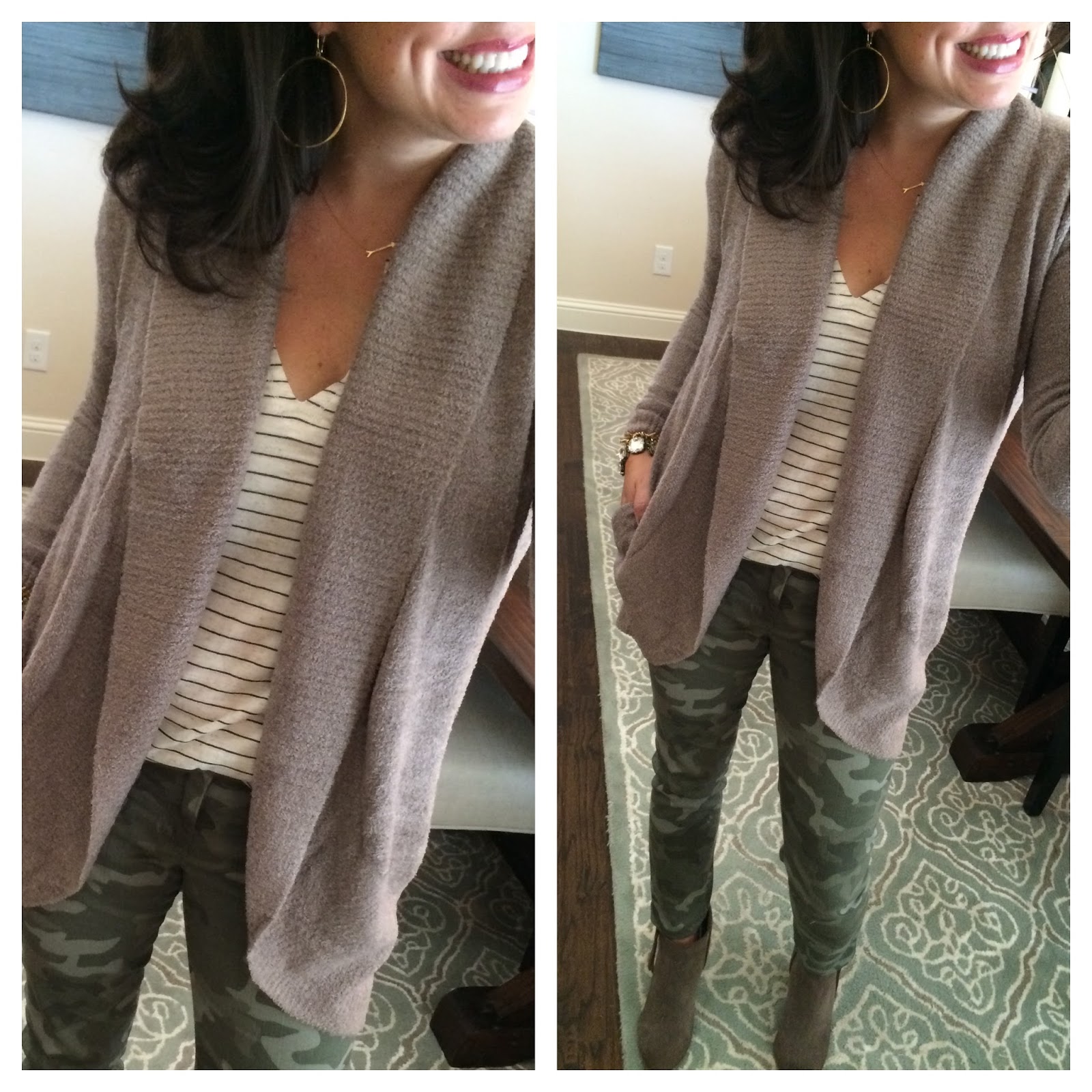 I bought the camo pants you linked from Loft last year and they are y favorite pair of pants ever!! I just added that baby blardigan to my cart – I love the striped tee and sweater look! Thanks for the style ideas! Susan