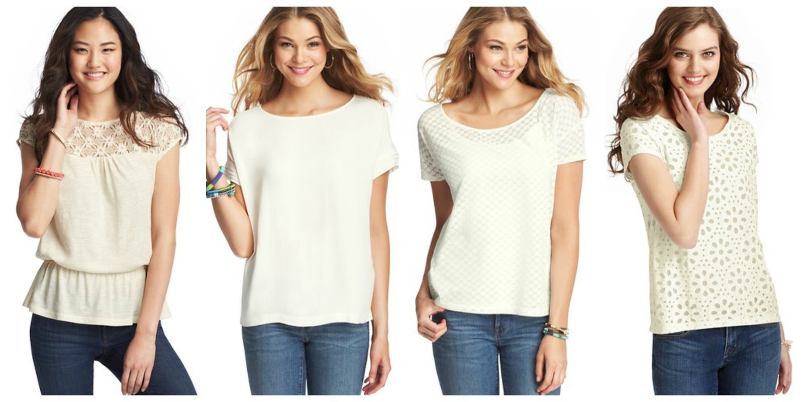 crochet peplum HERE, pin tucked sleeve wedge blouse HERE, burnout dot tee HERE