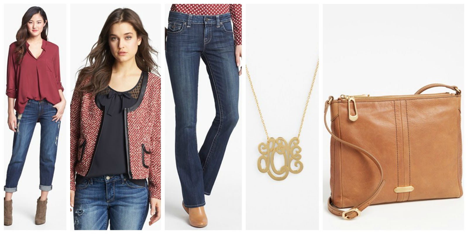 The shirt comes in several colors and looks like it could definitely be a very versatile piece in your wardrobe. The tweed jacket is DARLING. I’m a little worried about the length of the collar, but I love everything else about it so much that I will definitely be giving it a try. “Wine” definitely seems to be the color of the season. The boot cut jeans are from Kut from the Kloth (which is who made my beloved denim jacket). I’ve heard great things about their jeans, so I’m excited to try them. I think the “LOVE” necklace is so sweet, it’s a great price, and it comes in both gold and silver. The cognac color of the cross body is perfection. I also think the bag is a great size (and of course a great price)!