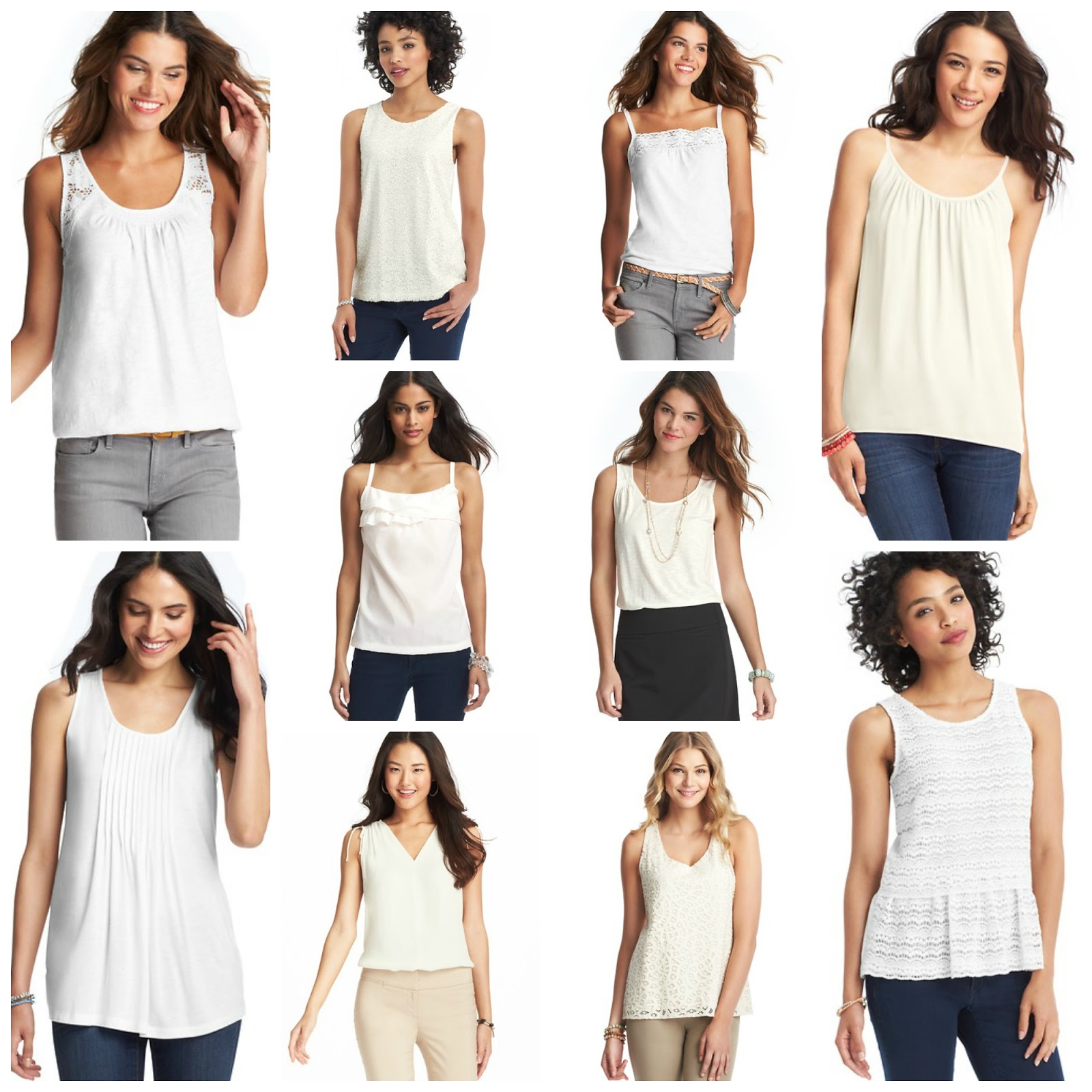 Love the look! I have and love this white tank from Old Navy! http://oldnavy.gap.com/browse/product.do?cid=72256&vid=1&pid=524429002