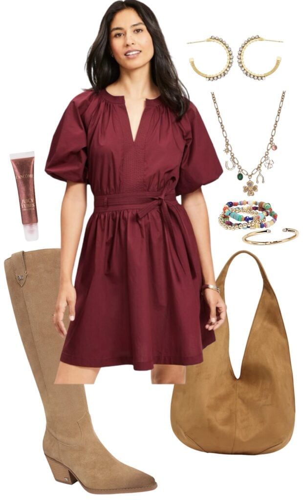 I just bought that burgundy/plum dress with puffed sleeves at Loft over the weekend! I will have to style like you’ve shown. I’m SO ready for fall.