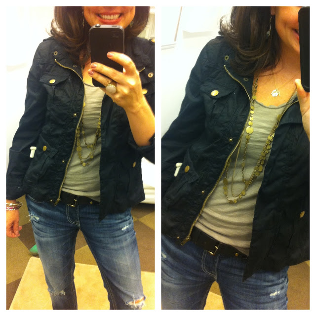 I have the must have denim jacket – Love! I also have the original must have Vigoss jeans – I am debating if I should keep them or exchange them for the "clean" non distressed version. I love the distressed look on others, just not sure it is for me. I have a statement necklace, leopard flats and the must have shirt on my wish list as purchases in the near future!