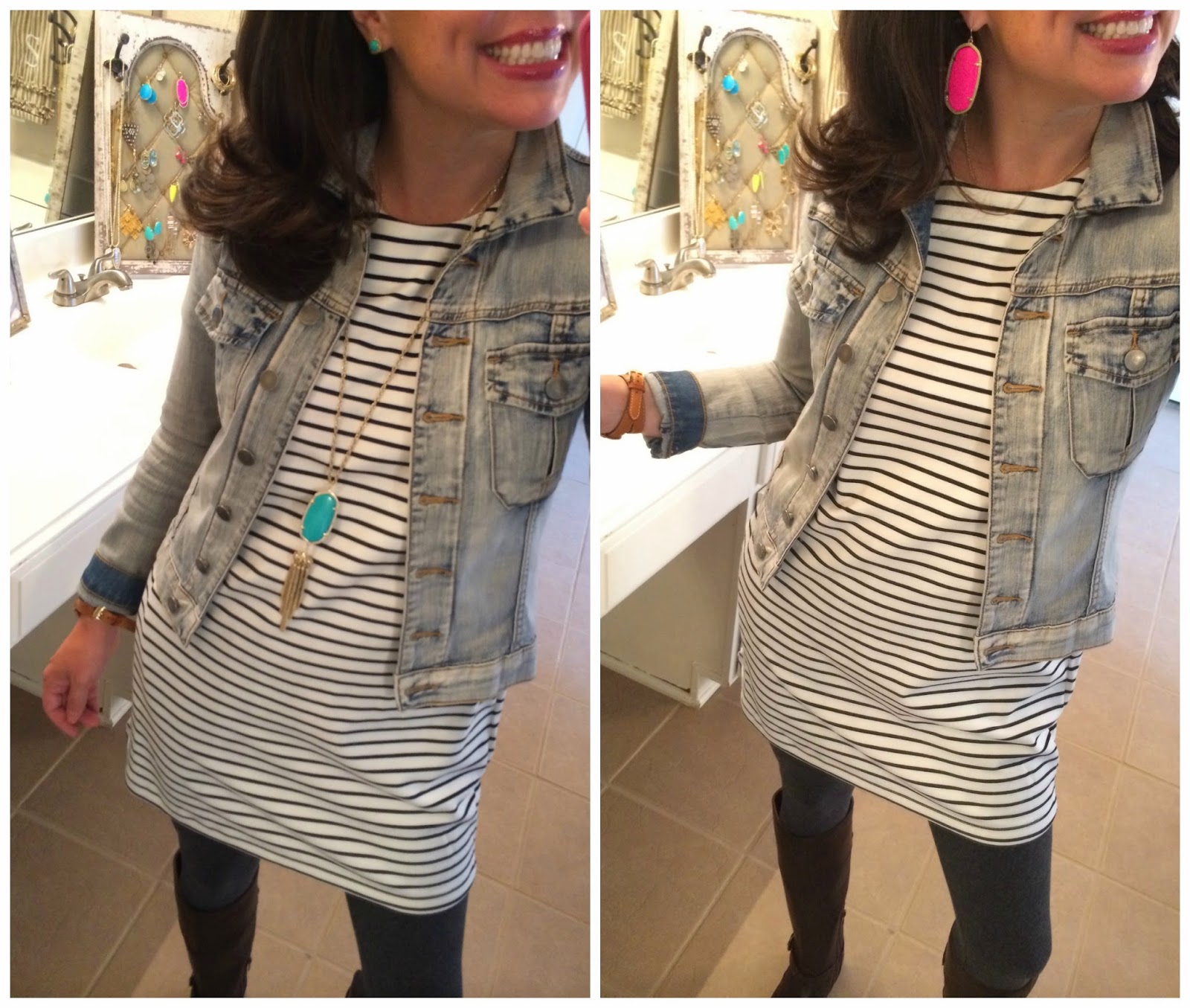 (jacket HERE/ dress sold out, but similar HERE and HERE / my Frye boots sold out, but others HERE / MUST HAVE leggings HERE)