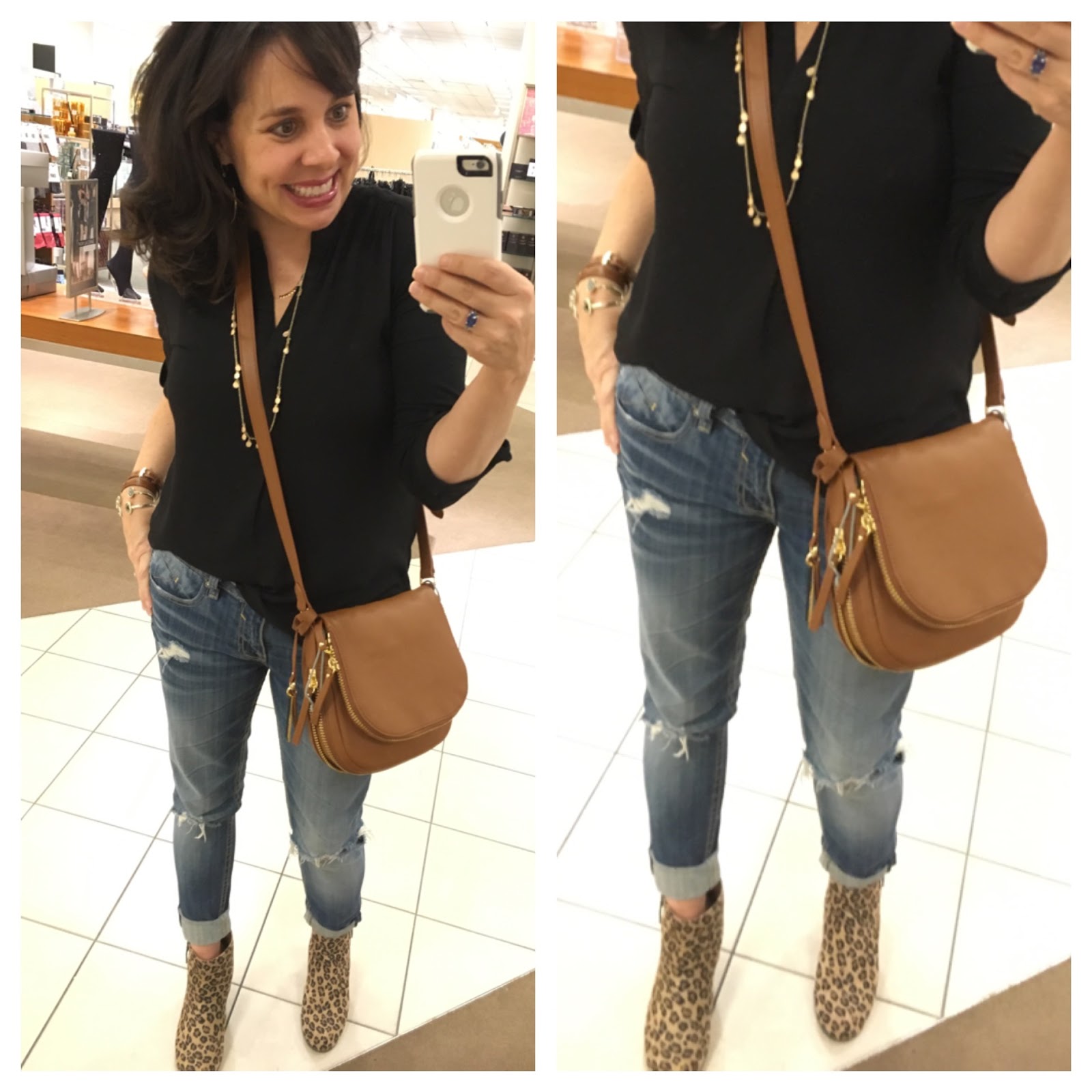 I’ve been looking for a cognac crossbody bag, because the one I carry from Sole Society (that I get asked about by y’all every time I carry it – the one in outfits #6 and #7 above) is sold out and is not being re-stocked.