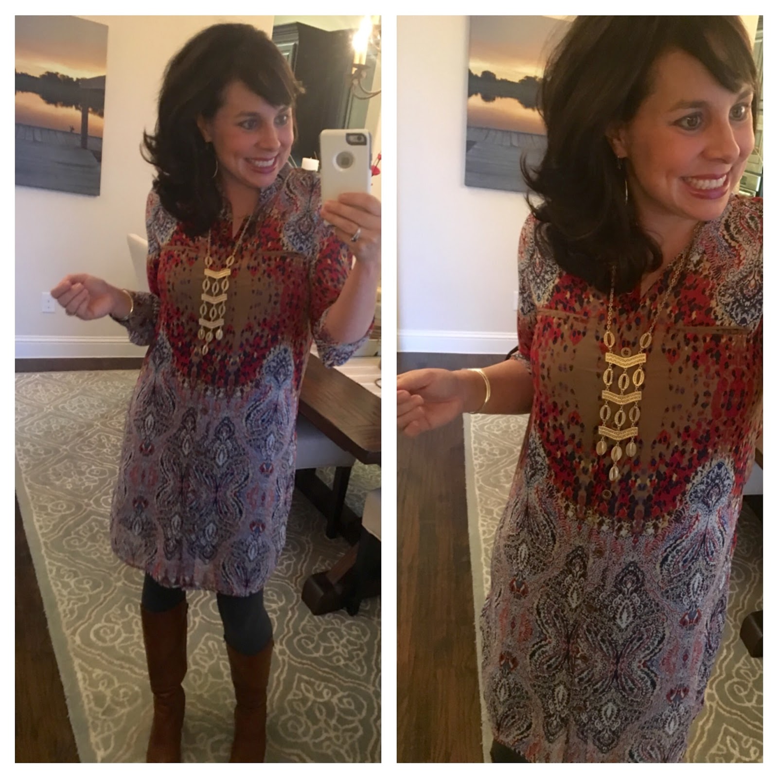 Hi Christina! I've e-mailed the shop owner to ask her about the earrings. A couple of other people have already e-mailed me asking if I knew when they would be re-stocked! Sadly, I do think lifting a tunic would be just as awkward as lifting a dress. And finally, you are going to LOVE you A.C. items!!! xoxo, Sheaffer 🙂