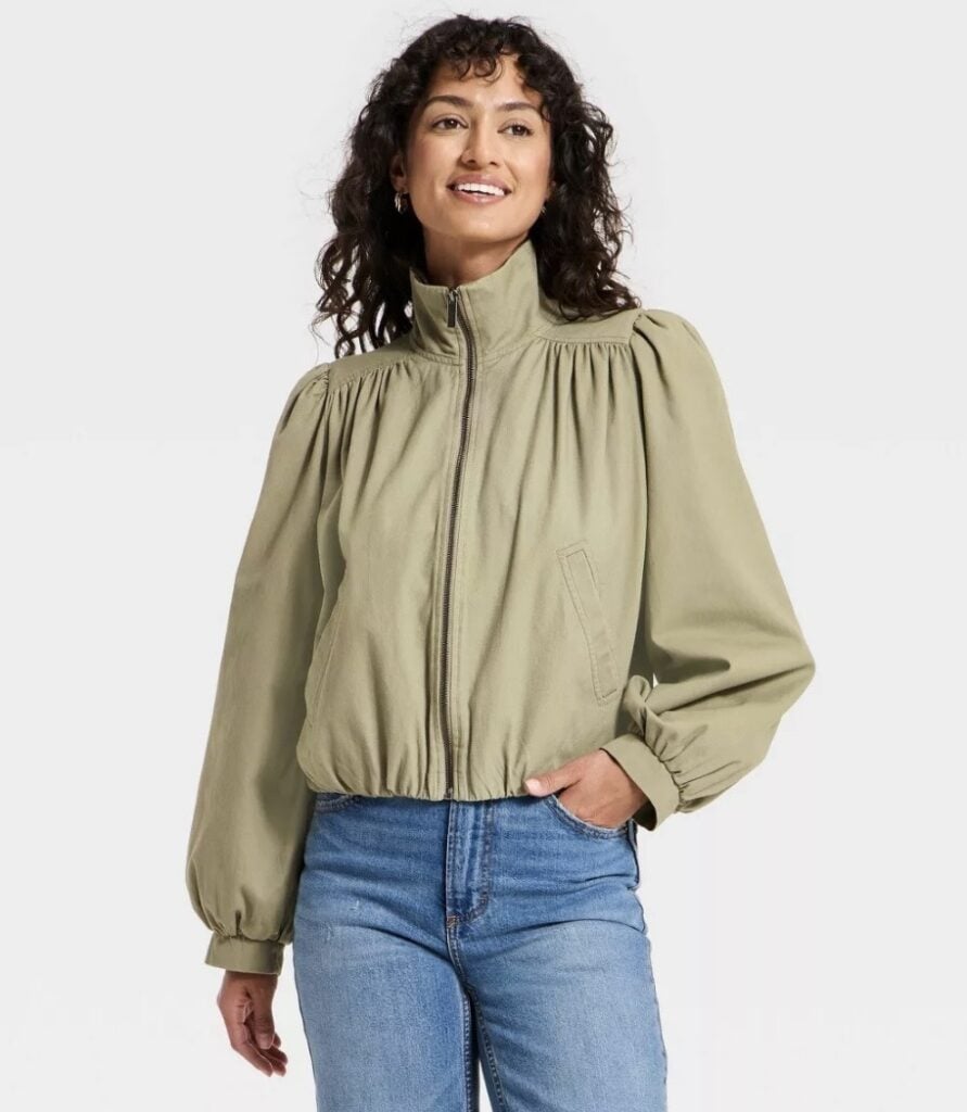 I’m not wild about this bomber jacket all zipped up like this, but worn open over a basic white tee with the necklace above? I KNOW I’LL LOVE IT. It will be on my doorstep on Saturday!