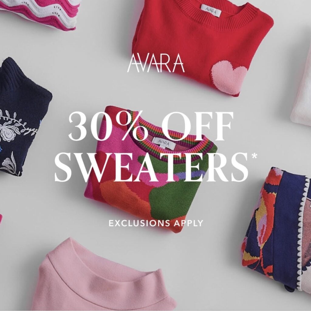 This weekend you can get 30% OFF sweaters at Avara! No code needed, and the sale price will automatically show up in your cart. There are some really really great ones included in the sale.