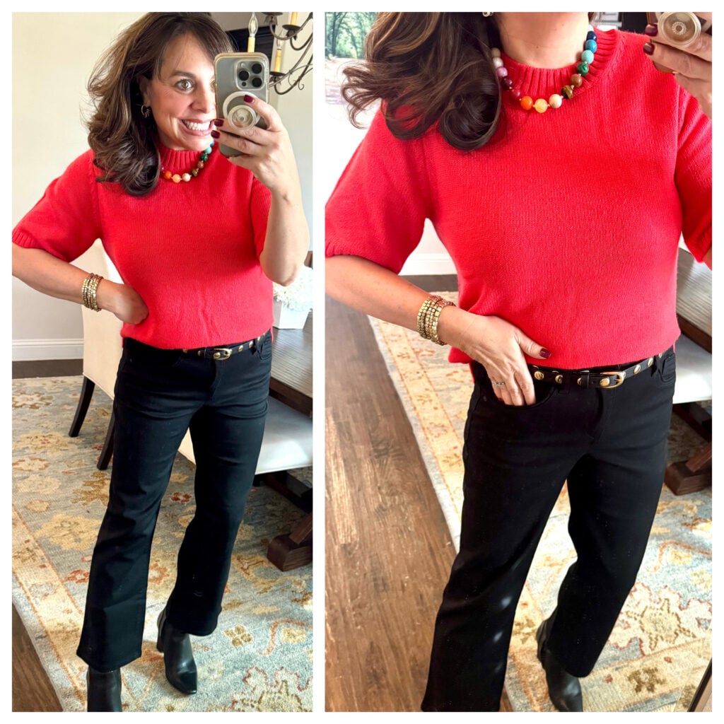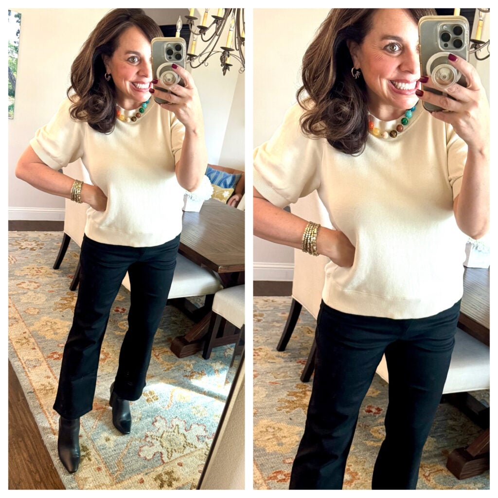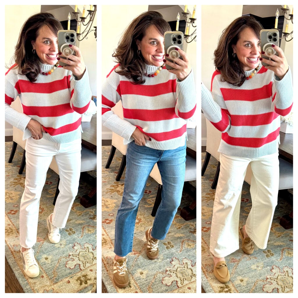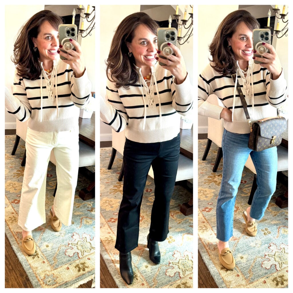 And now I’m going to style the sweater a handful of different ways…
