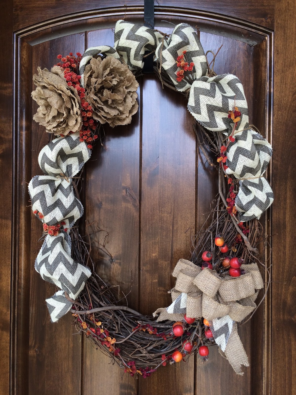 So, I don’t normally decorate for fall around my house, but I guess the new house is inspiring me. I got a bee in my bonnet (yes, I totally feel like a grandma for saying that expression), and made this wreath a couple of weekends ago.