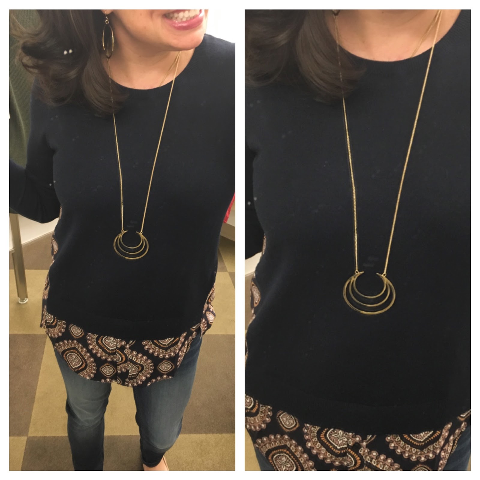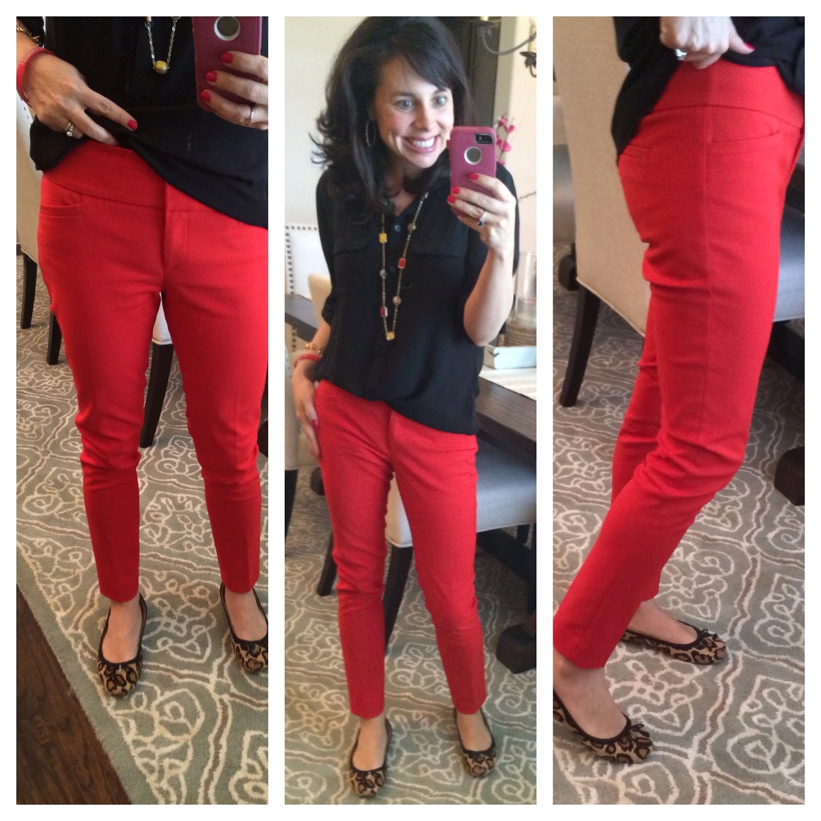 Where is the necklace from in the pic with the black utility top and red ankle pants? Too cute!