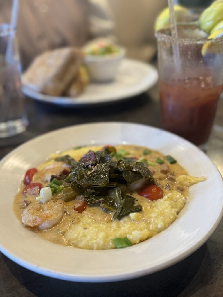 We got to sleep in again the next day and had a yummy brunch scheduled for 10:30 at B Matthew’s Eatery. I had the fried green tomato and crab cake benedict, and while it was great, I couldn’t stop eyeing Meagan’s shrimp and grits!
