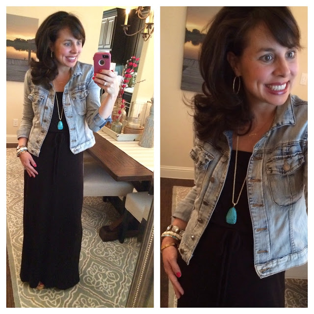 I’ve got some black maxi dress options for you, because it’s such a great staple…and it looks great paired with a denim jacket!
