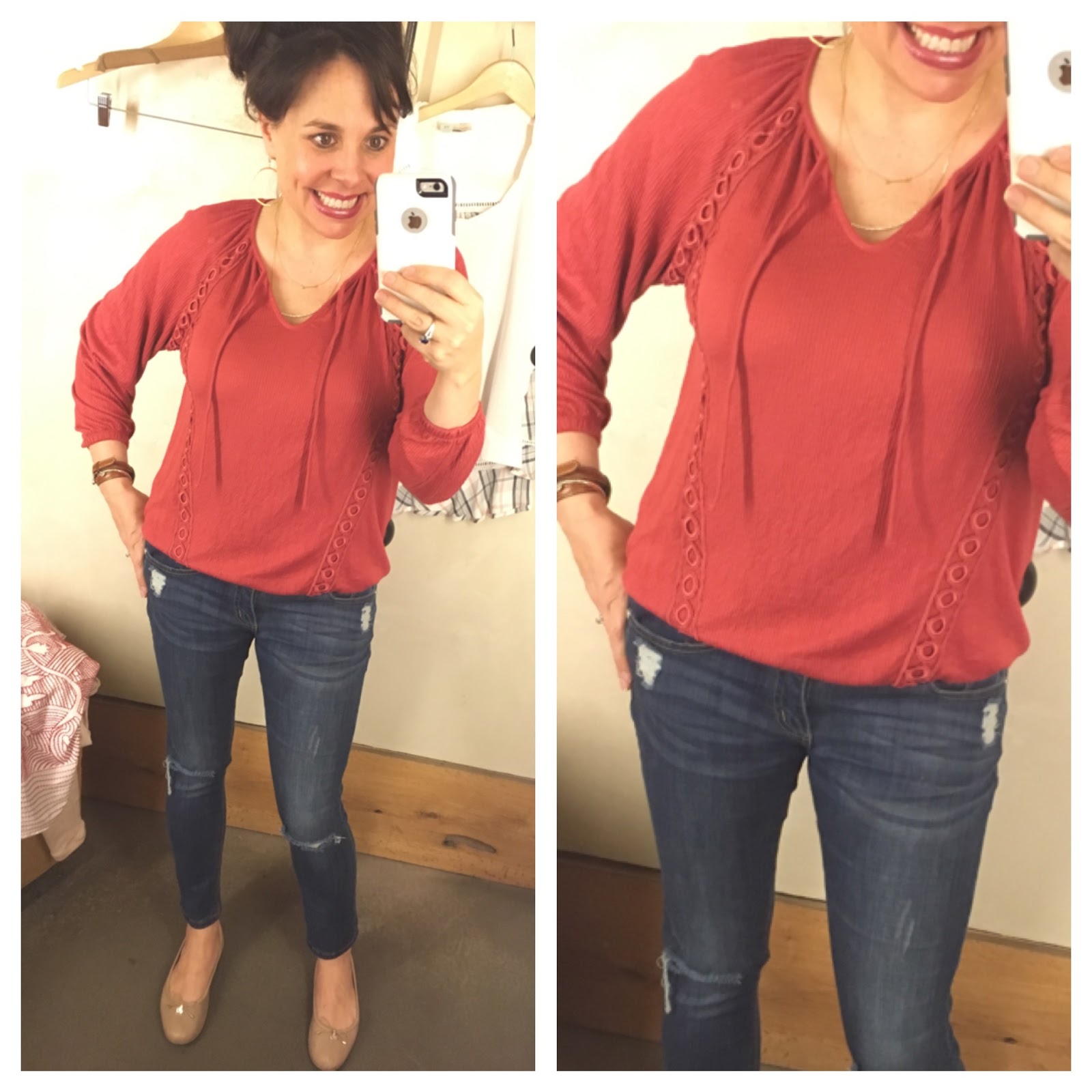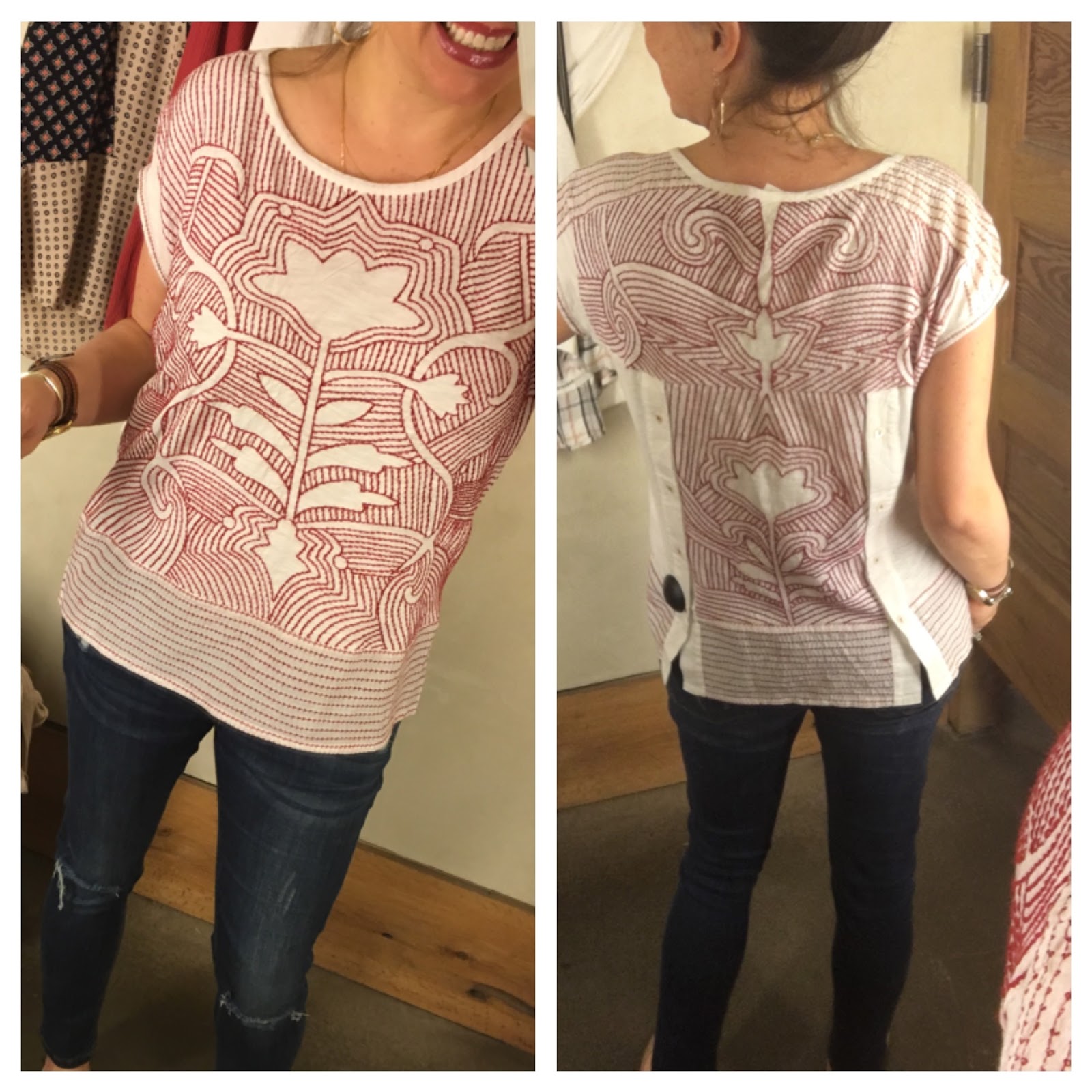 Okay, you look DARLING in that Anthro embroidered top and that size fits you perfectly! Second, I own two denim jackets, but I'm seriously considering this one bc you never let me down!!! Also, that pic of you and C makes me so happy every time I see it…and laugh a little. 😉 xo