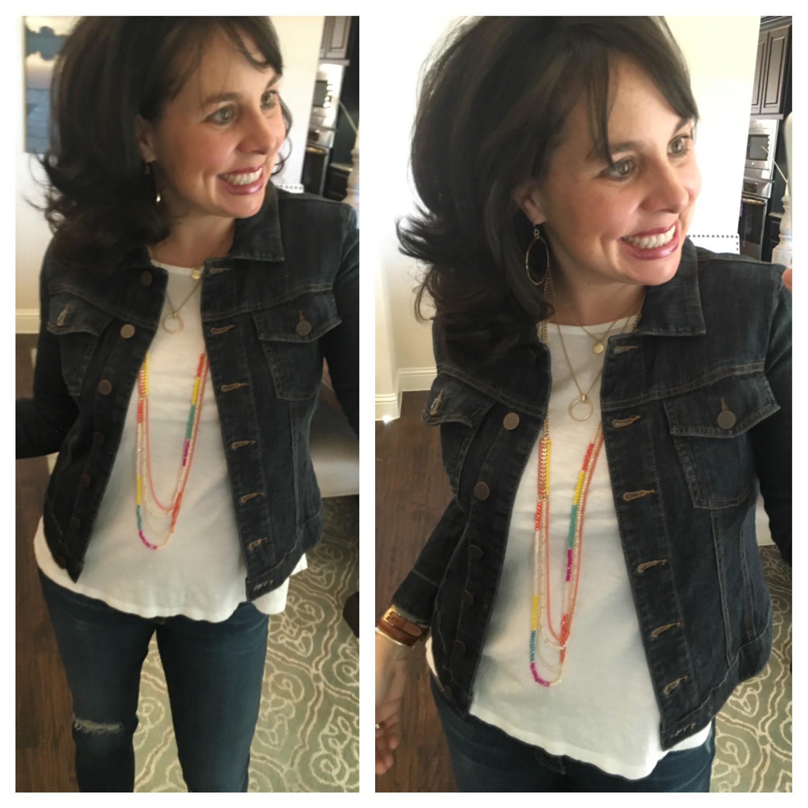 I bought the denim jacket because of you and have the darker denim and the white. I actually wear the white all the time in the summer with maxi dresses so if anyone is on the fence about the white jacket I think it is it's own Must Have!