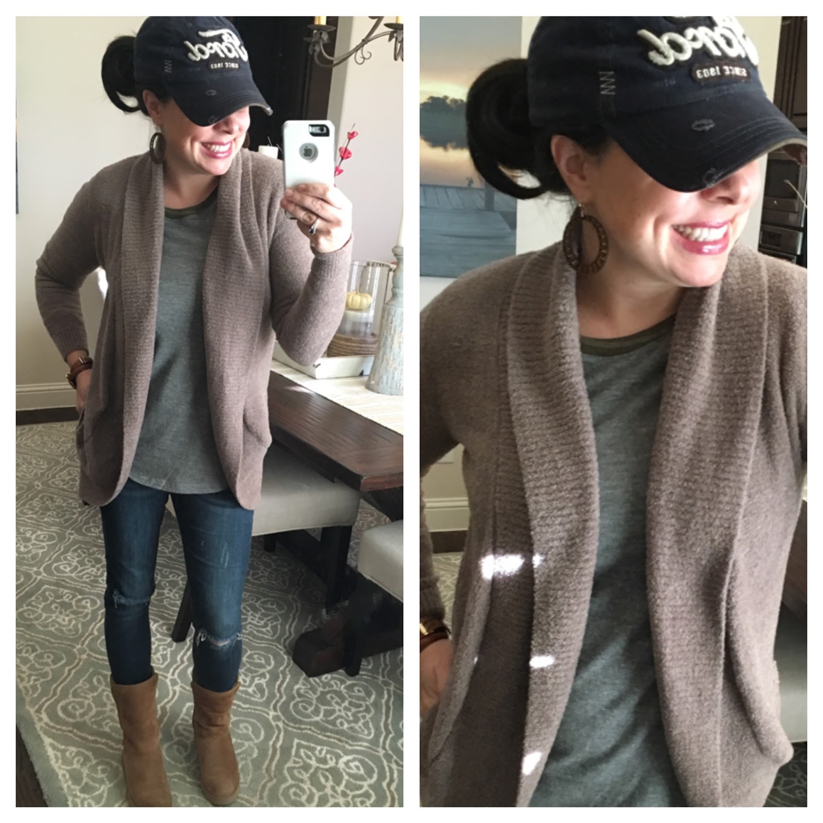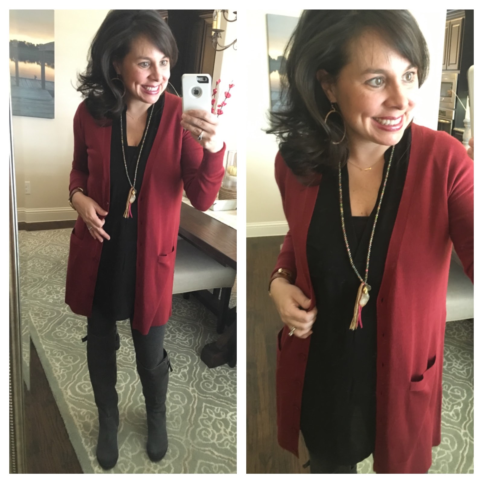 I paired these two items with my new boots from Sole Society (ON SUPER SALE) and a long cardigan that is NOW ON SALE as well! I thought it was a fun look, and for those of you that have the top and the leggings already, just add this cardigan to recreate the outfit!