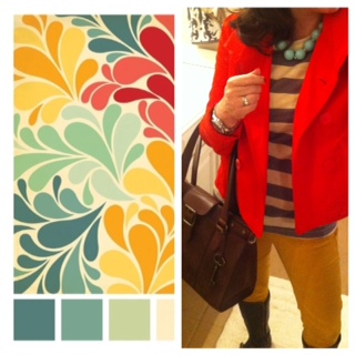My friend Cassie over at Hi Sugarplum uses rooms to inspire outfits, and it is so much fun to see what she comes up with! Click HERE to see her do her thang! I thought that if she could use a room as inspiration, then I could use this paint chip type thing. (I really have no idea what it is.)