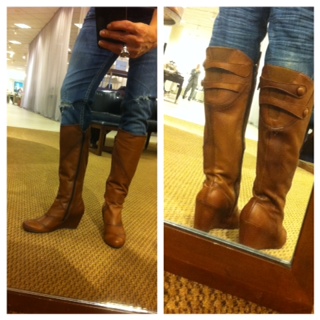 Dang it! You got me again. I've put those boots in my cart like 5 times now but never pulled the trigger. Finally did this morning after seeing the "real" pictures you had vs the online pic from Nordy's. (The color was throwing me off – I'm hoping they really aren't has red as the online picture, right???) At any rate, they are ordered. Oh and I figured I would just throw in the skinny jeans as well. Fantastic. My husband will be so excited 😉