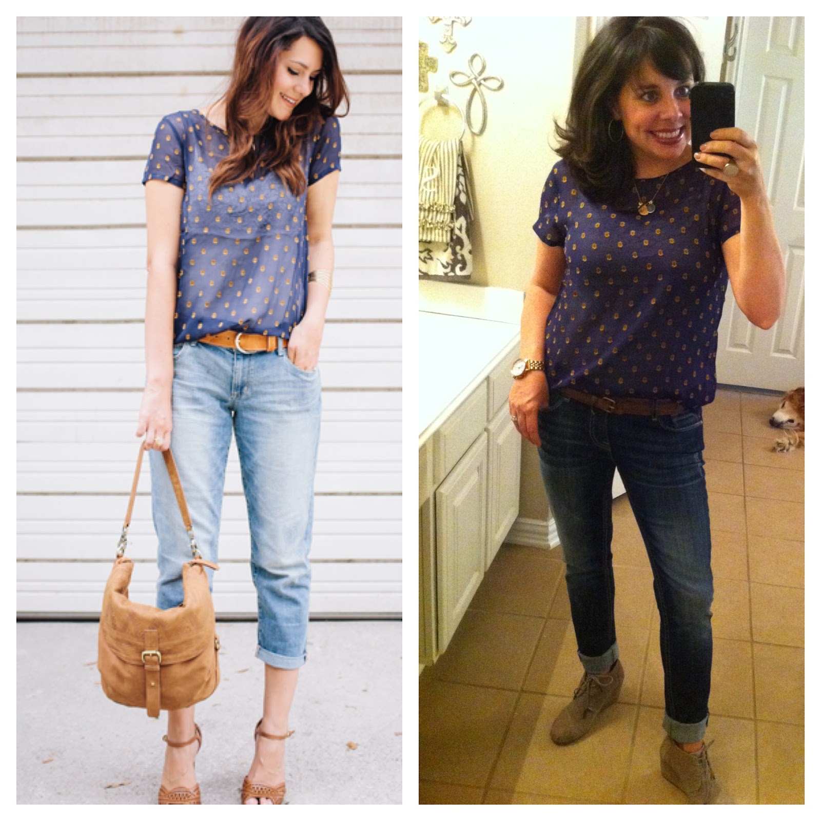 Love the navy & mustard top. Cool idea to pair with a lace cami. I never would've thought of that either! My must have jeans should be arriving today so I will keep you posted! Have a great day! 🙂