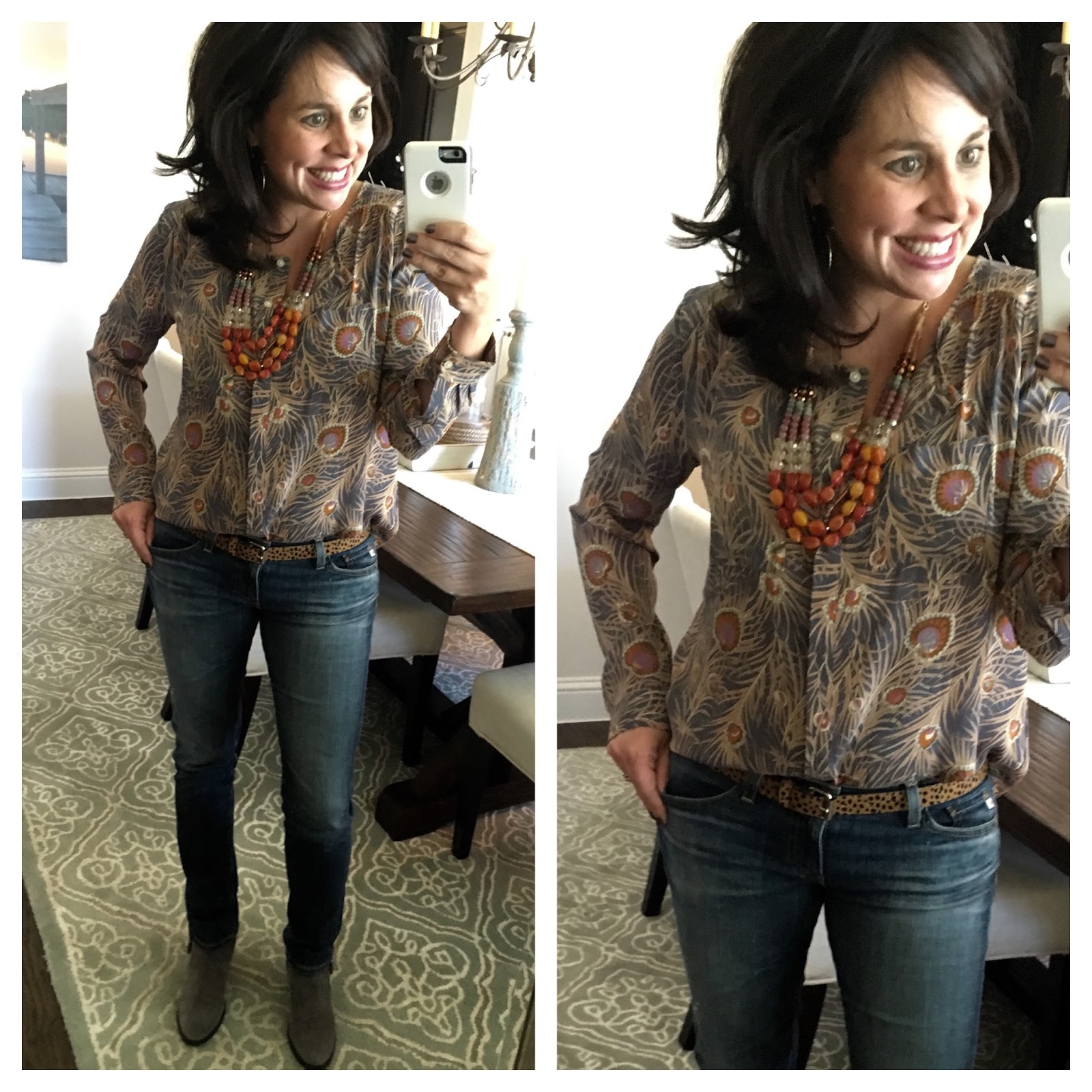 I just found your blog and I LOVE it! Although, the Husband might not 😉 What size are you wearing in the Lou and Grey Signature Soft V-Neck Tunic? You look to be about my size and I want to be sure it's long enough without being to boxy. Thanks!!