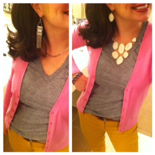 Love your "control" outfit, never thought of putting pink with my mustard skinnies — I know what I'll be wearing later this week 🙂 Of course accented with some awesome jewelry!