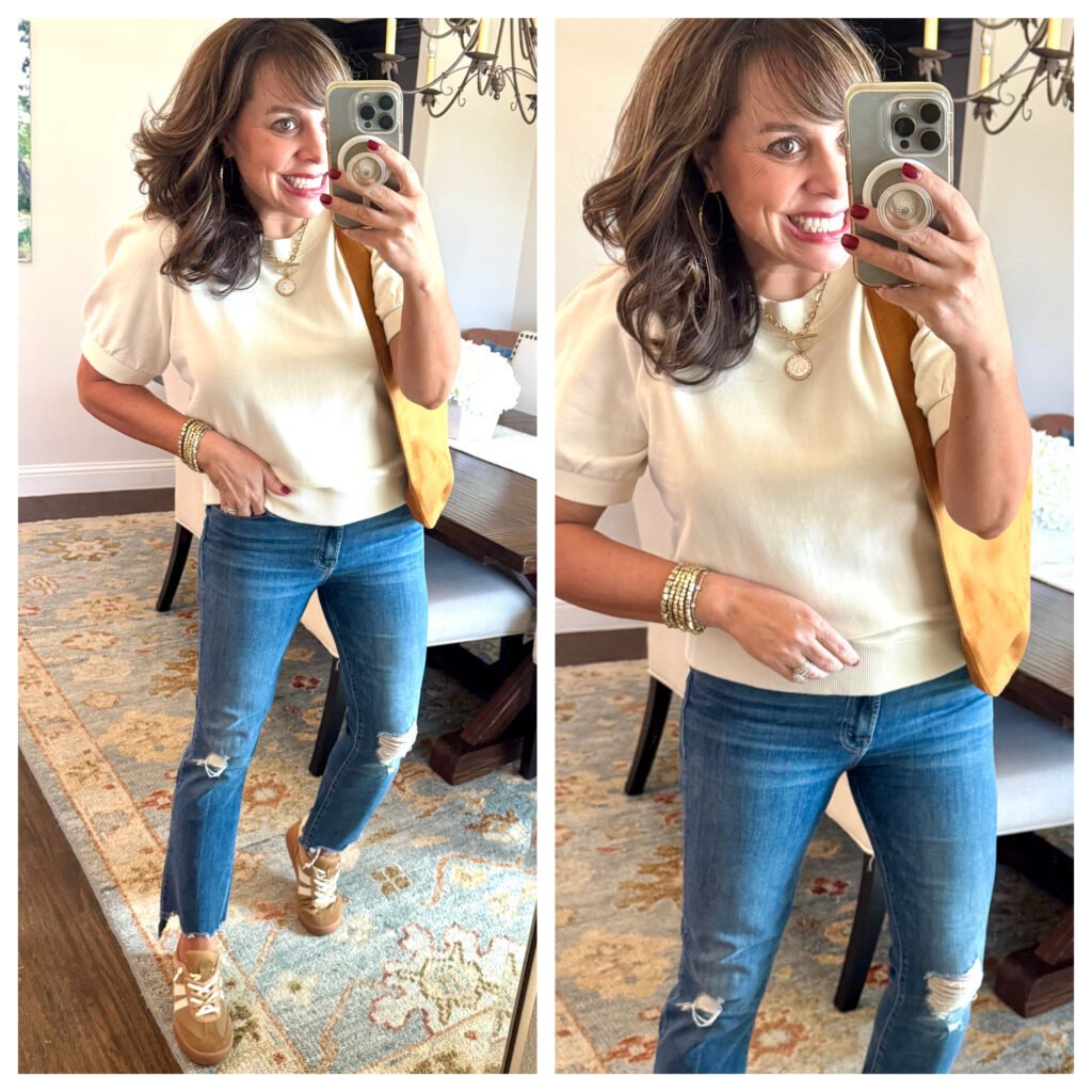 1) puff shoulder blazer / Okay, this blazer is FABULOUS. I’m about to show it two ways. First up, with denim!