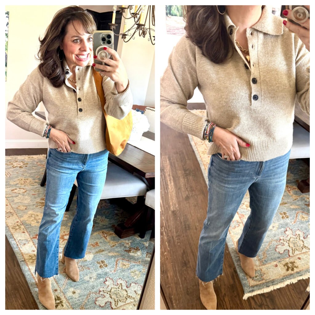 And here they are with the half-button sweater. I’m wearing a medium, and it’s a relaxed fit.
