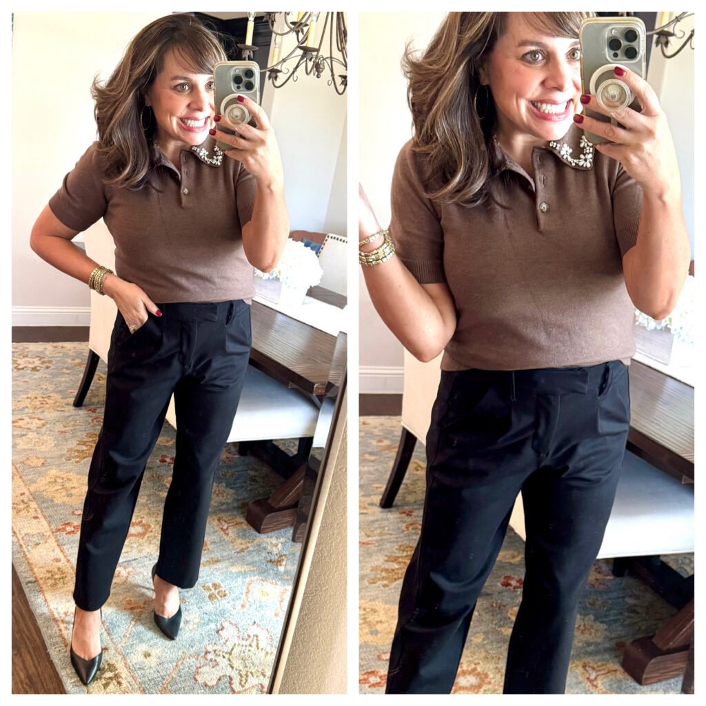 Dressing this sweater up with my favorite pleated straight leg ankle pants was a total no brainer. And the pants are NOW ON SALE!