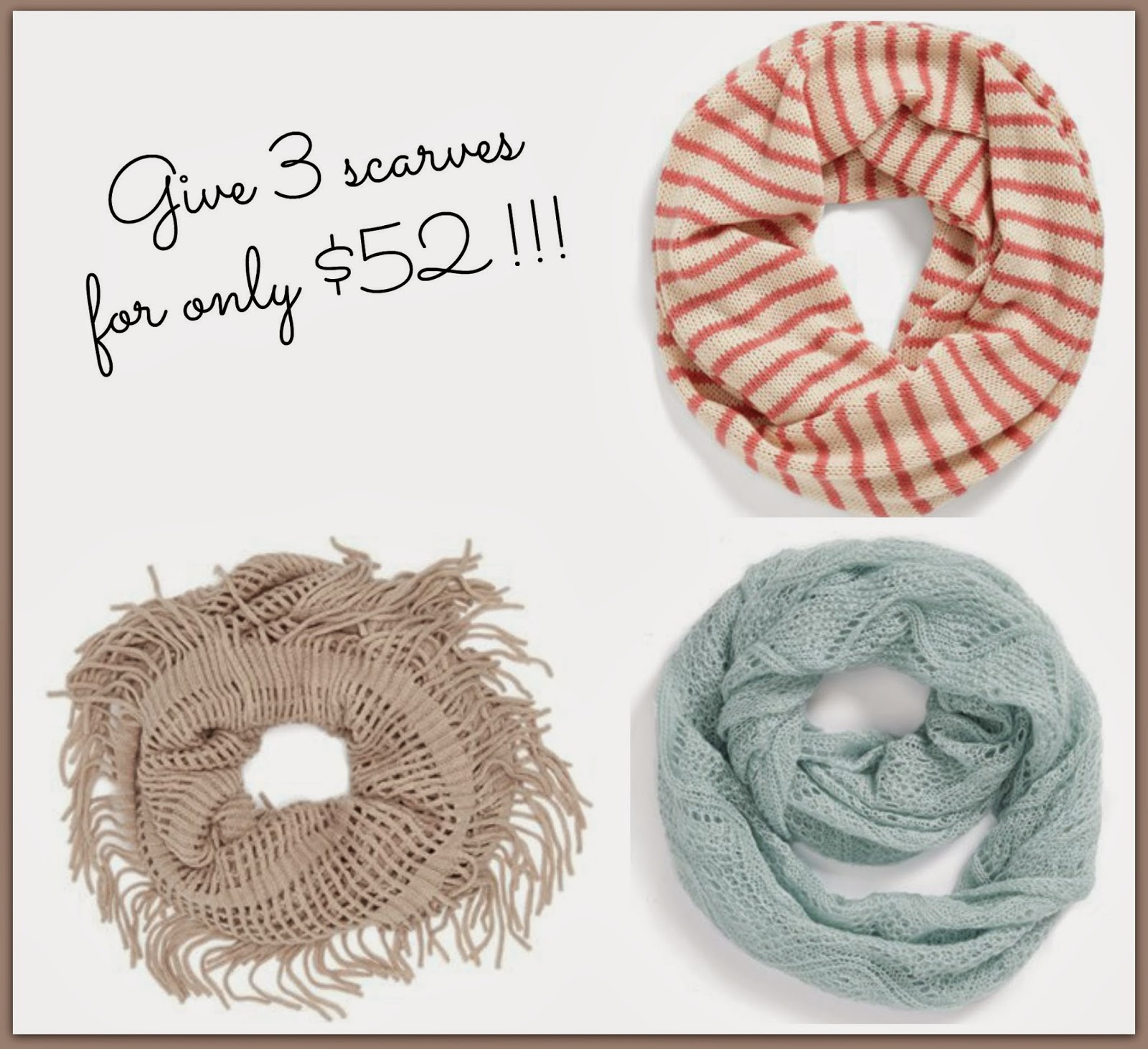 Wore my open weave fringe scarf today…warm and styling…love it! I have the tab opened for ordering the Target tanks as soon as I finish this comment…those are so long…love! And you're right, for $6 you can't go wrong and need multiple colors! Thanks for another great giveaway! Stay warm!