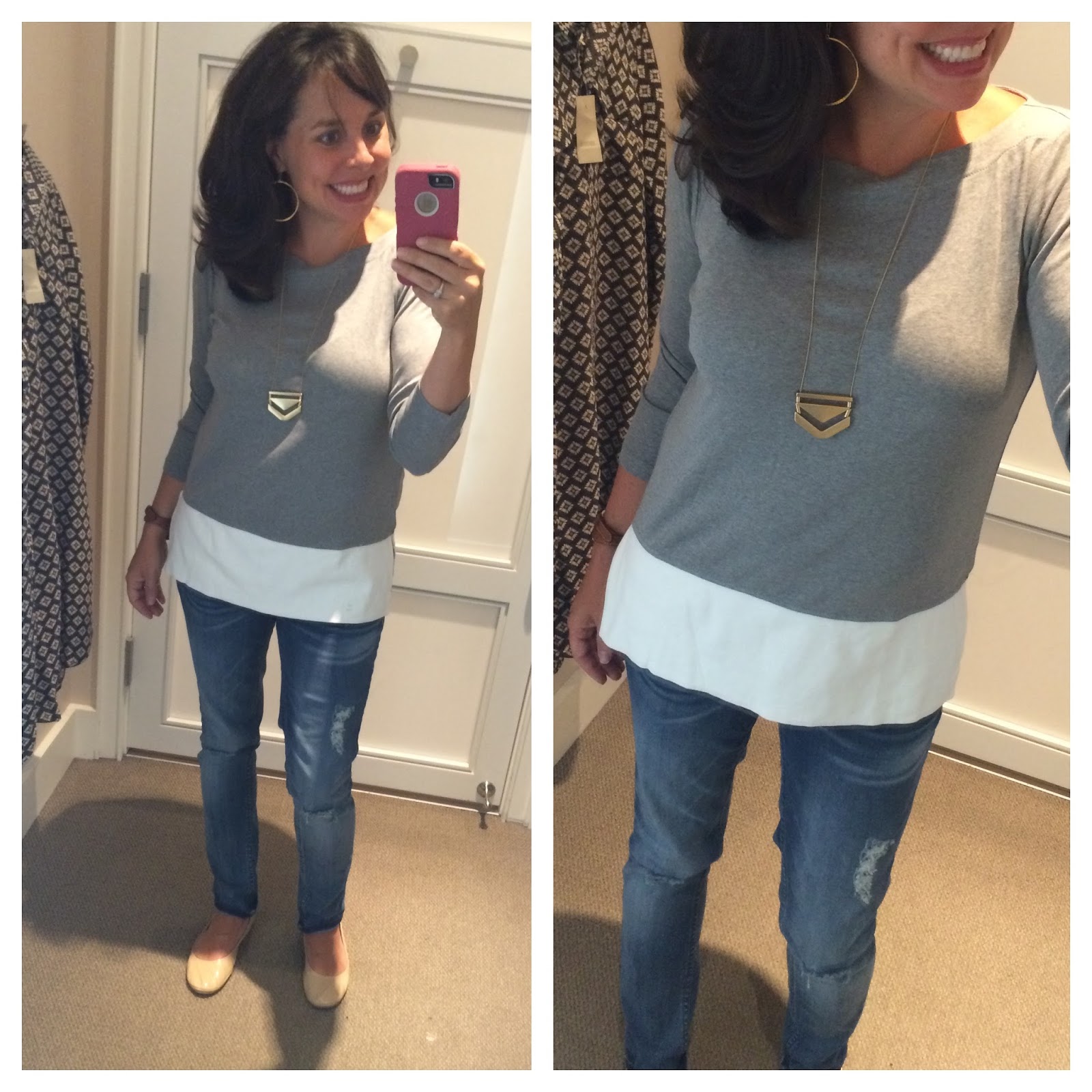 I was unsure about this when I saw it on the rack, but the Anthro girl insisted I put it on because she said so many people were loving it! I am a sucker for a “layered” top. 😉