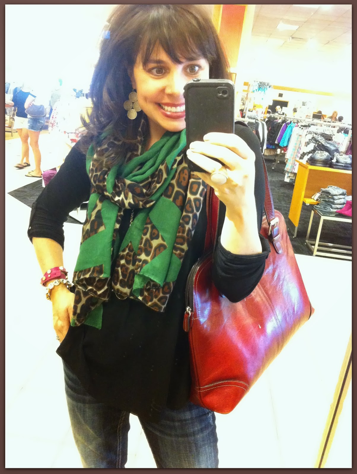 Love that leopard and green scarf! I am going crazy over the bag you have in the photo too! What kind is it? Where is it from? Etc.! I absolutely love it!