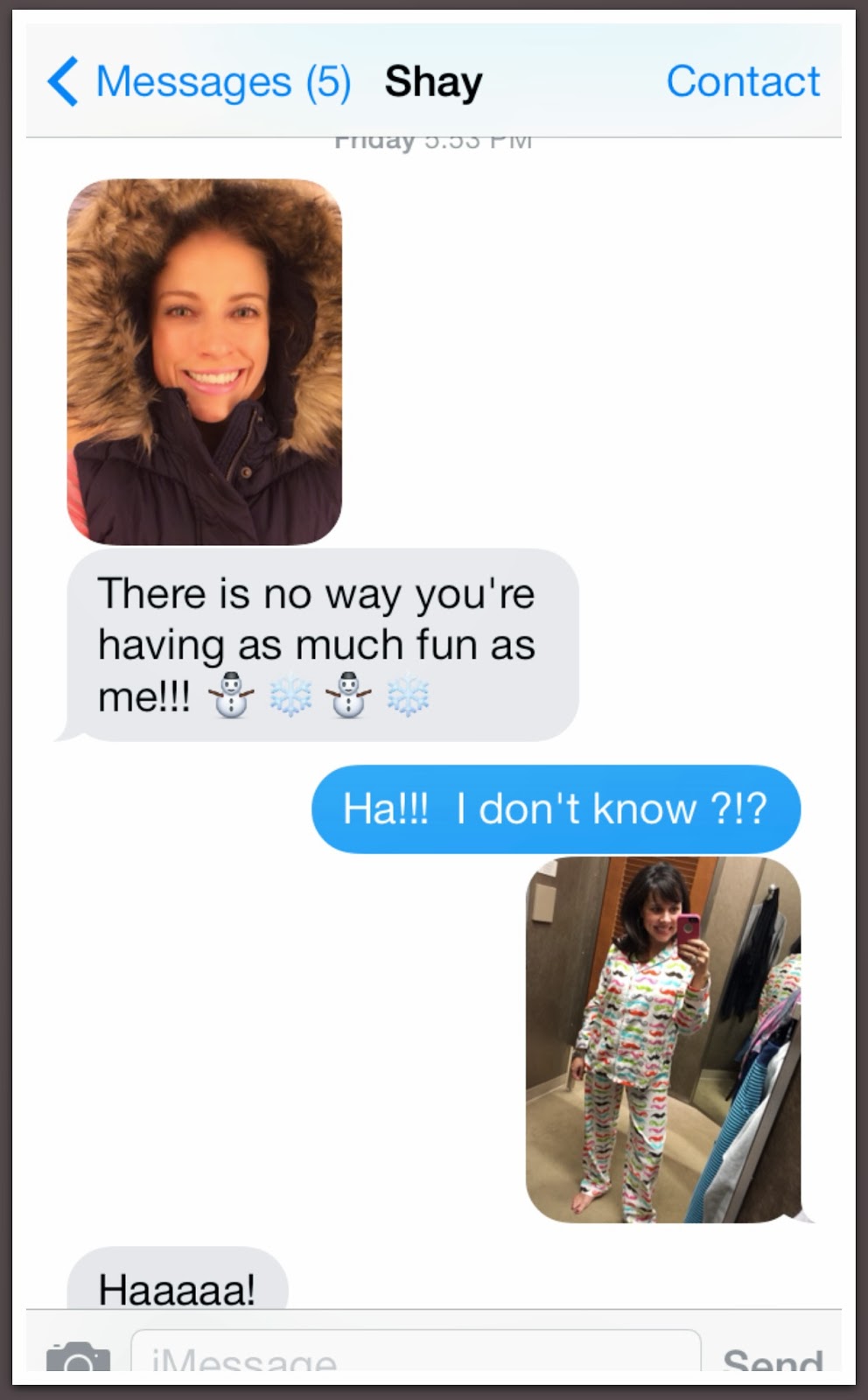 Those PJ's are total awesomeness! Mustaches and coziness=too cute to handle! The photo collage of you & Shay is so fun. Aren't girl shopping trips the best?