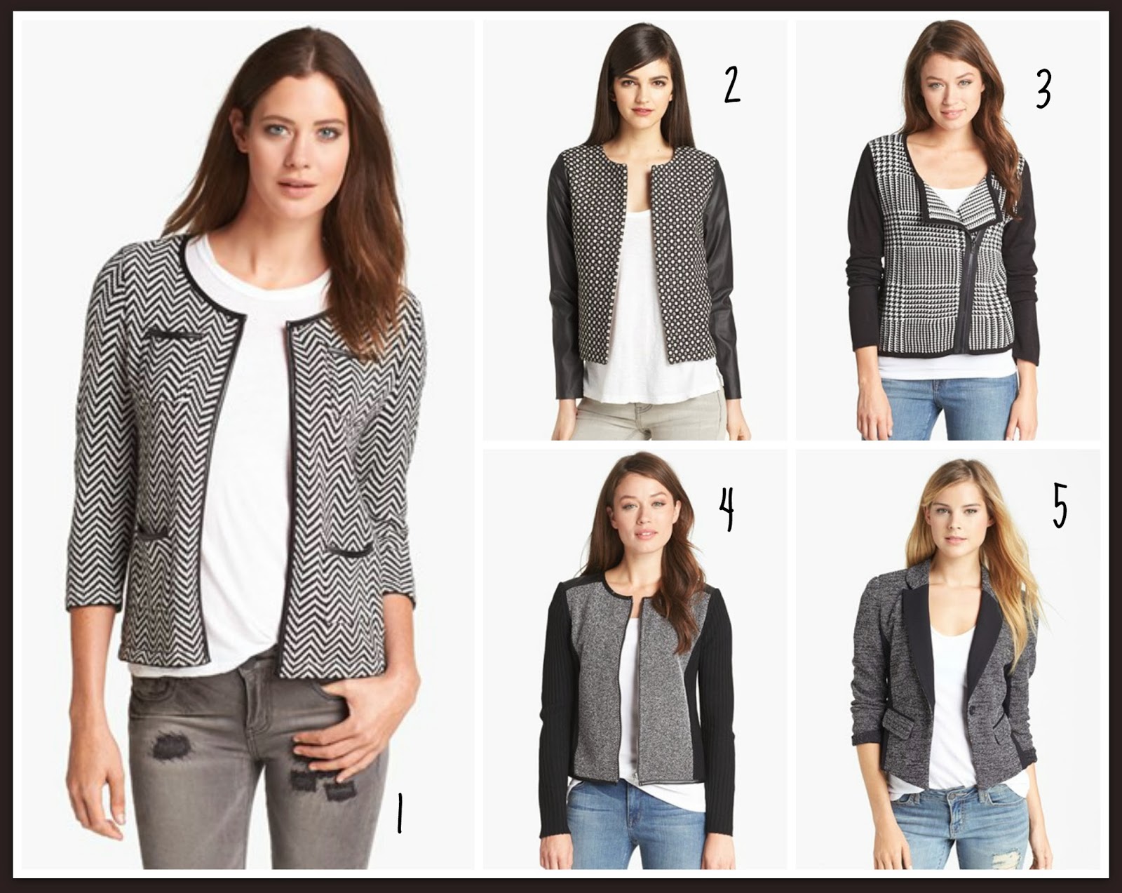 I don’t know about you ladies, but even though I’ve lived my entire life without a black and white graphic jacket, I all of a sudden HAVE TO HAVE ONE. Like YESTERDAY.