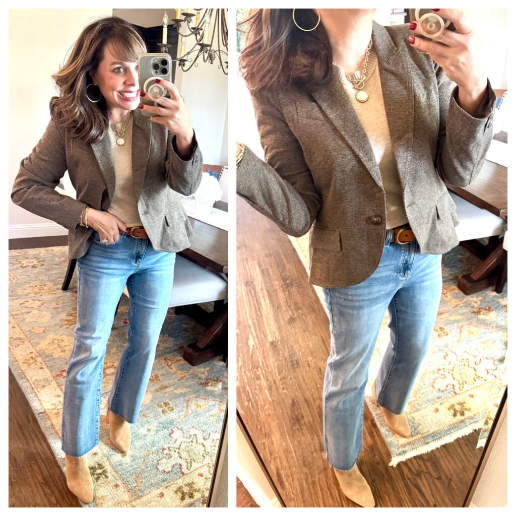 Okay, this is a piece you are seeing for the first time, and this blazer is FABULOUS. I’m about to show it two ways. First up, with denim!