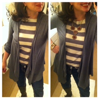 Just recently found your blog, and it's so cute! I'm not on Pinterest (because I know my limitations and I would get totally sucked into it and my house would be disgusting and my kids might not get fed or bathed or looked after! Ha!), but I am a mama that likes to feel put together and cute when I get out everyday. So I really like seeing all of your outfit choices inspired by Pinterest!! Oh, and I have those rain boots in gray, and I LOVE them!!!! They are fun and neutral all at the same time!