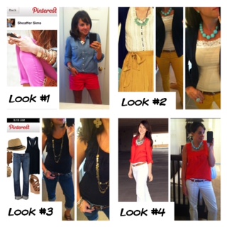 Taking outfits that I’ve pinned on Pinterest, and recreating them with clothes out of my own closet.