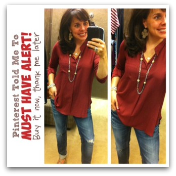 Oh I'm going to have to get the shirt and jeans! I guess I'm just going to have to advance my clothes budget for next month 😉 My only problem is that I have a 3 week old and still have 9 pounds to go so I'm going to have to guess a little on sizes…but don't want to miss out on the sale!! I think I deserve a few new clothes for pushing out a baby without any drugs! ha!